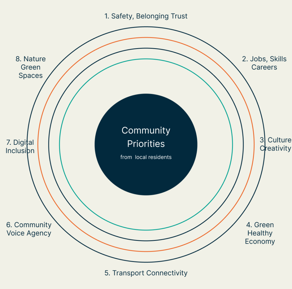 Alongside the spatial work, we have carried out community engagement across the Freeport area to understand what matters most to residents. This has resulted in eight co-developed community priorities, which are now being used to guide the design of the Masterplan: